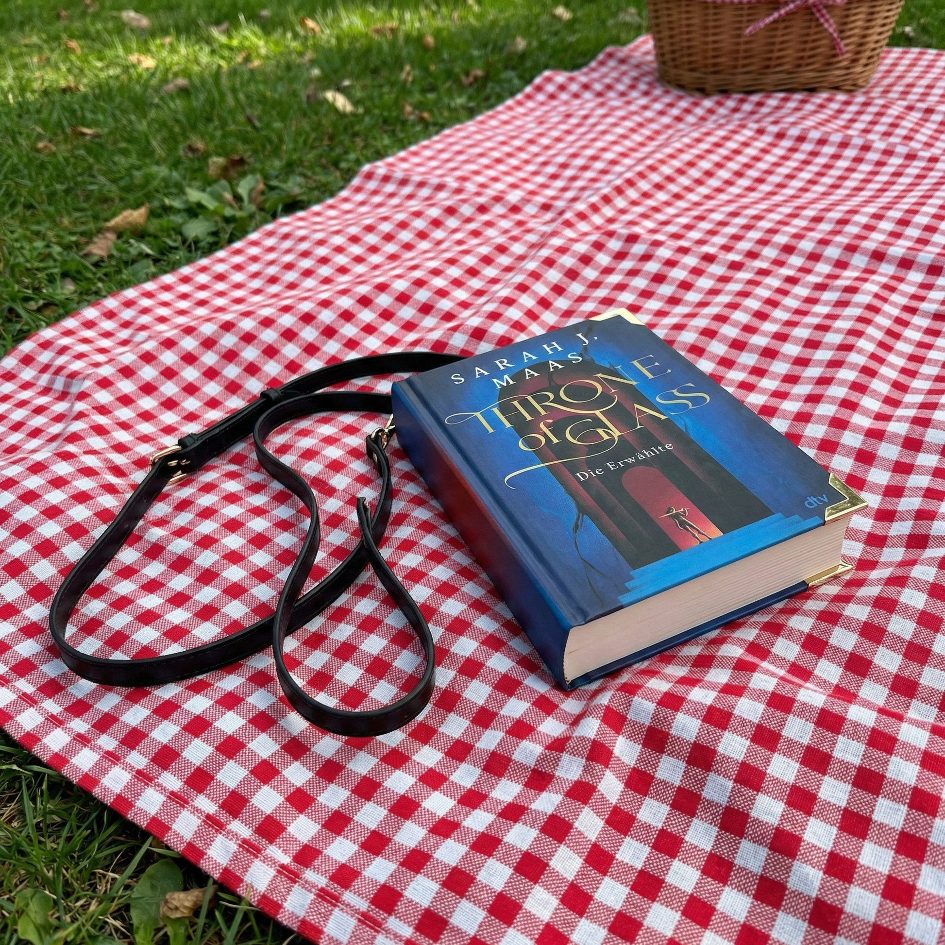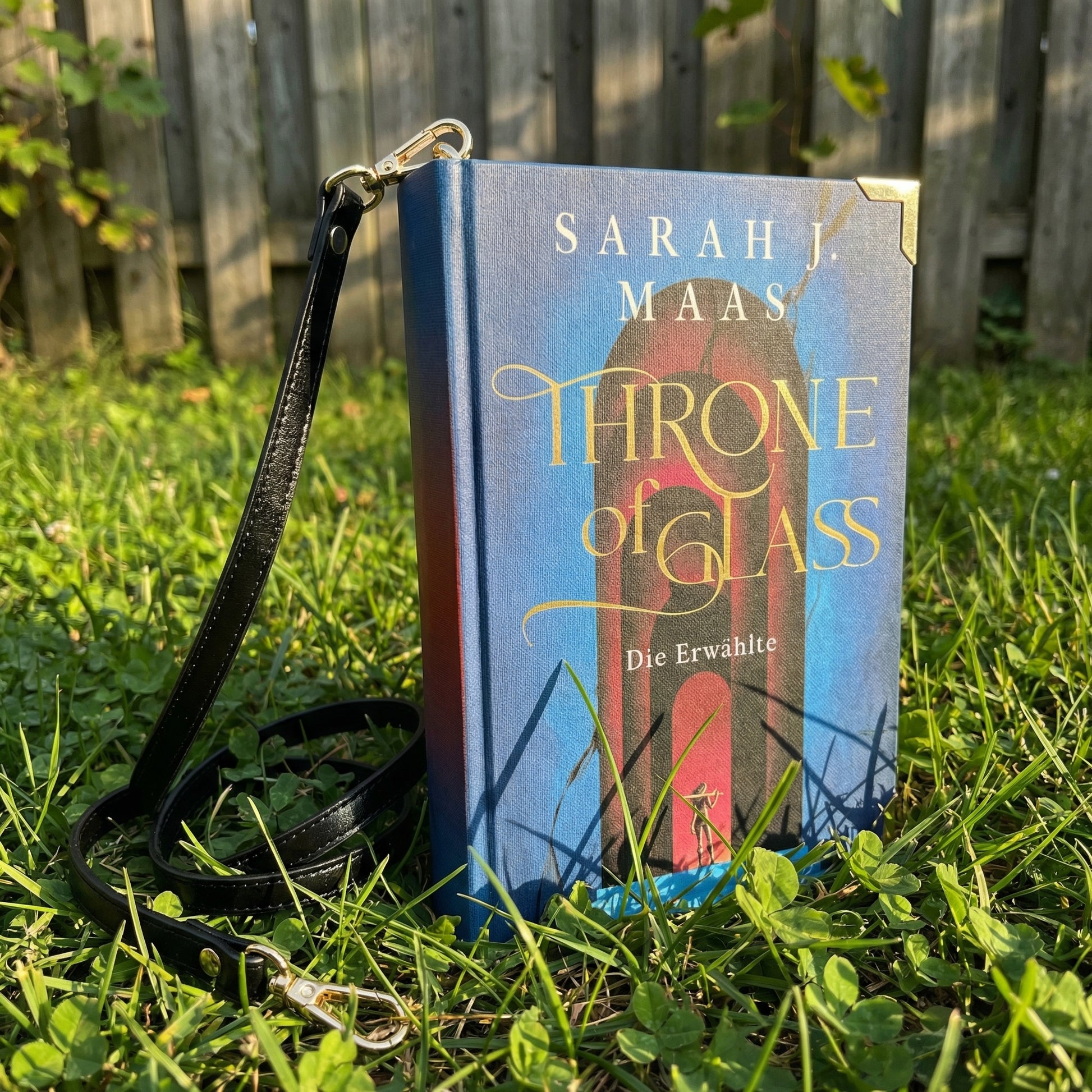 A stunning book-shaped bag featuring the iconic cover of Sarah J. Maas' Throne of Glass. Step into the world of Adarlan's assassin in style with this wearable work of art.